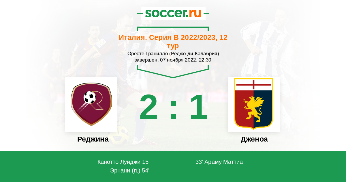 15' (1:0) Канотто Луиджи (31) (Майер Жан (37))
