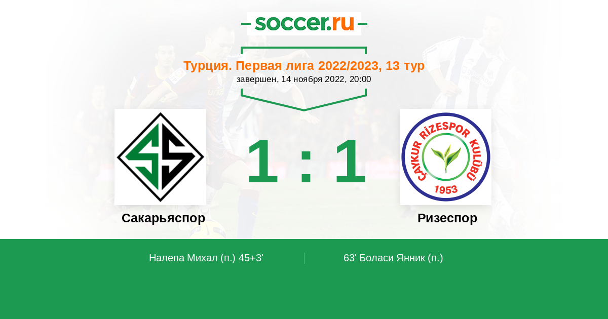 Протокол матча Сакарьяспор против Ризеспор