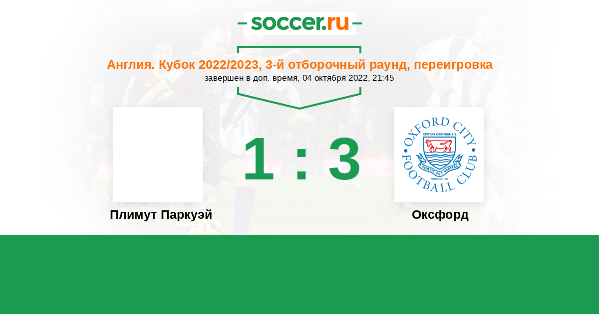 История матча Плимут Паркуэй против Оксфорд
