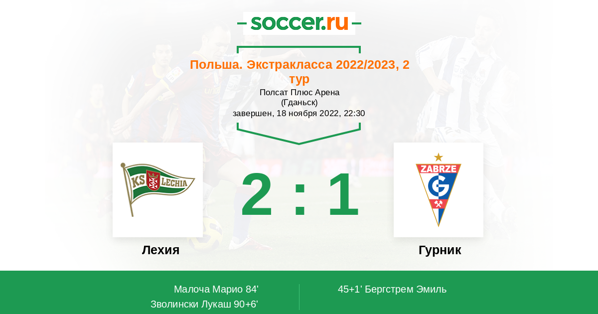 Протокол матча Лехия против Гурник