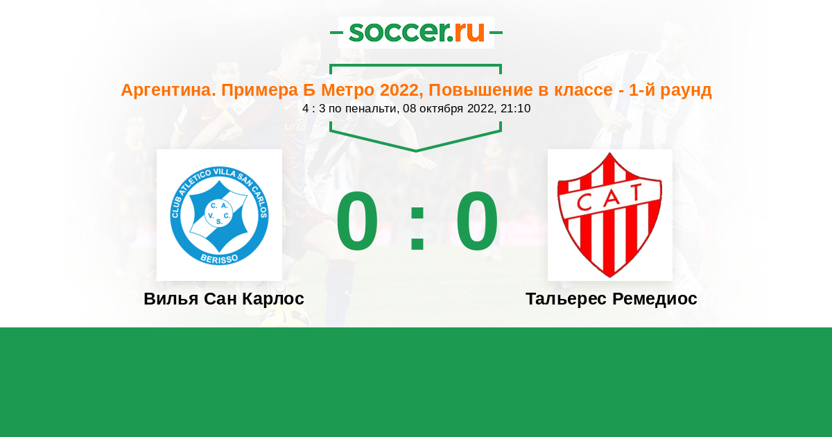 Протокол матча Вилья Сан Карлос против Тальерес Ремедиос