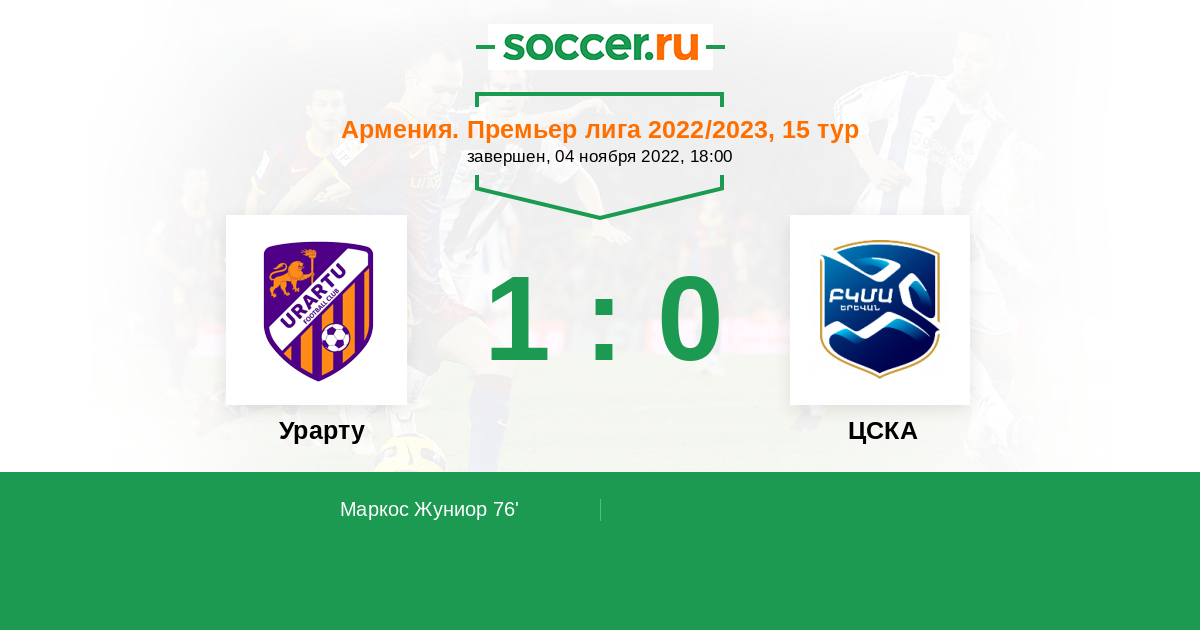 Протокол матча Урарту против ЦСКА