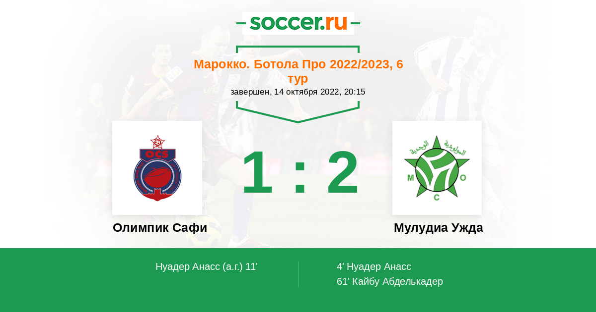 Протокол матча Олимпик Сафи против Мулудиа Ужда