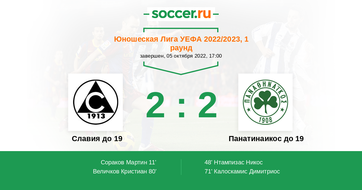Протокол матча Славия до 19 против Панатинаикос до 19