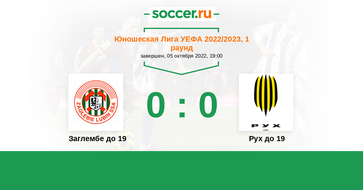 Протокол матча Заглембе до 19 против Рух до 19