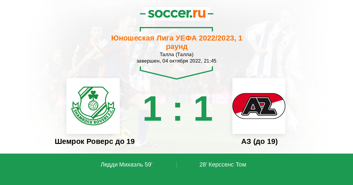 Протокол матча Шемрок Роверс до 19 против АЗ (до 19)