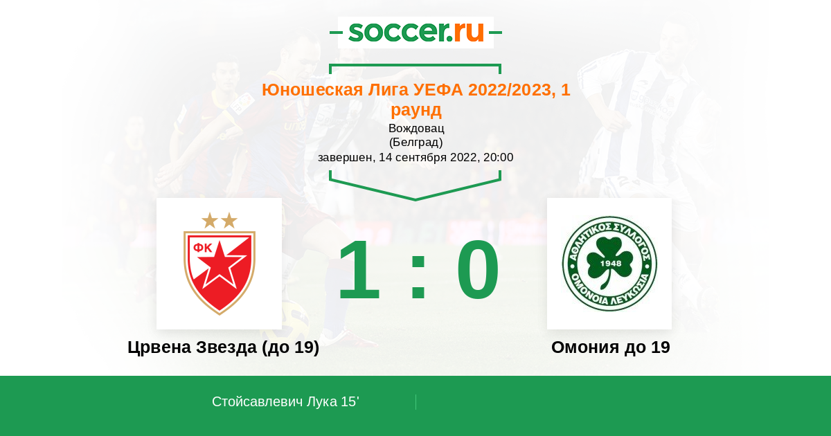 Протокол матча Црвена Звезда (до 19) против Омония до 19