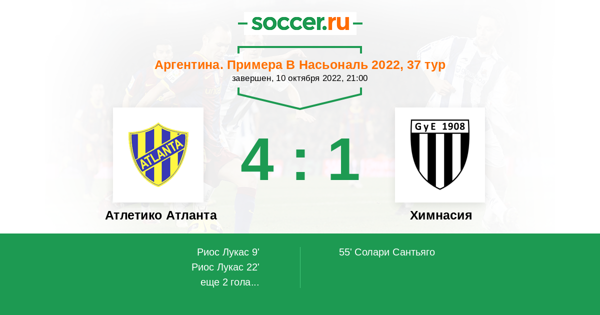 Протокол матча Атлетико Атланта против Химнасия