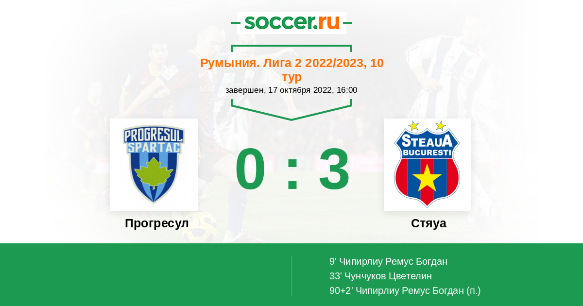 Протокол матча Прогресул против Стяуа