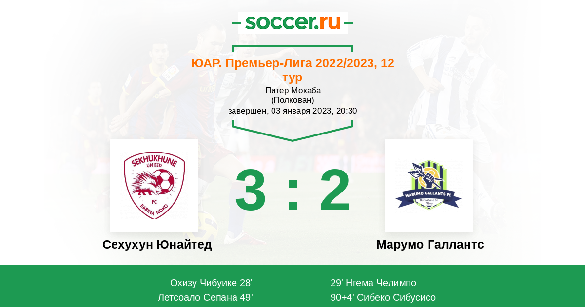 Протокол матча Сехухун Юнайтед против Марумо Галлантс