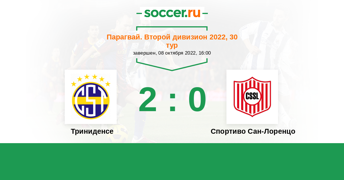 Парагвай. Второй дивизион 05.07.2022 Спортиво Сан-Лоренцо Логотип футбольный клуб Спортиво Сан-Лоренцо 3:0 Логотип футбольный клуб Триниденсе (Асунсьон) Триниденсе
