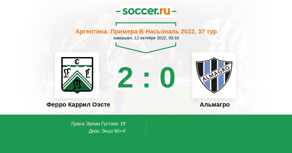 Протокол матча Ферро Каррил Оэсте против Альмагро