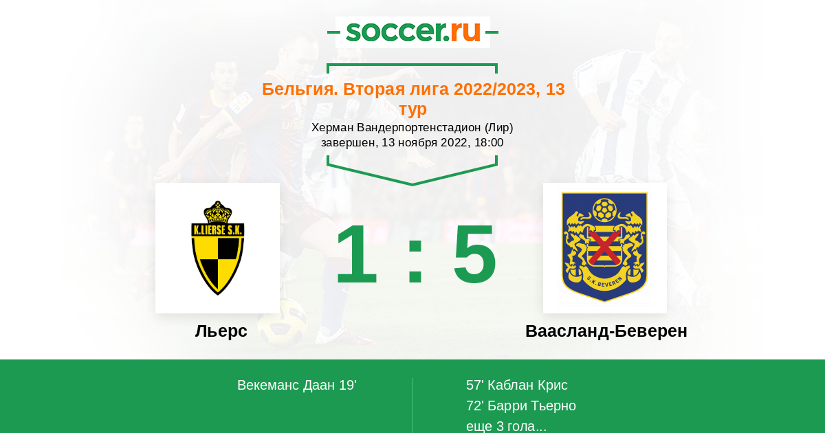 19' (1:0) Векеманс Даан (22) (Табеку Серж (30))