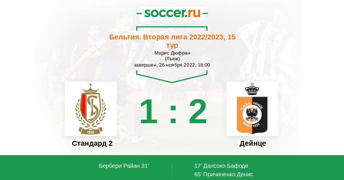 Протокол матча Стандард 2 против Дейнце