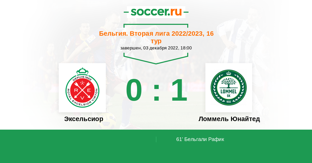 Протокол матча Эксельсиор против Ломмель Юнайтед