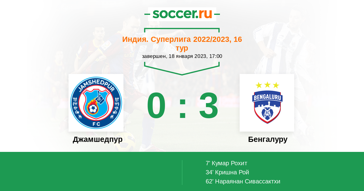 Протокол матча Джамшедпур против Бенгалуру