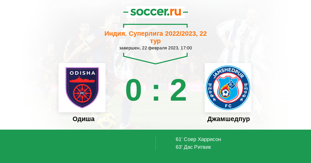 Протокол матча Одиша против Джамшедпур