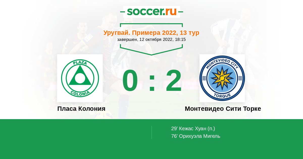 Протокол матча Пласа Колония против Монтевидео Сити Торке