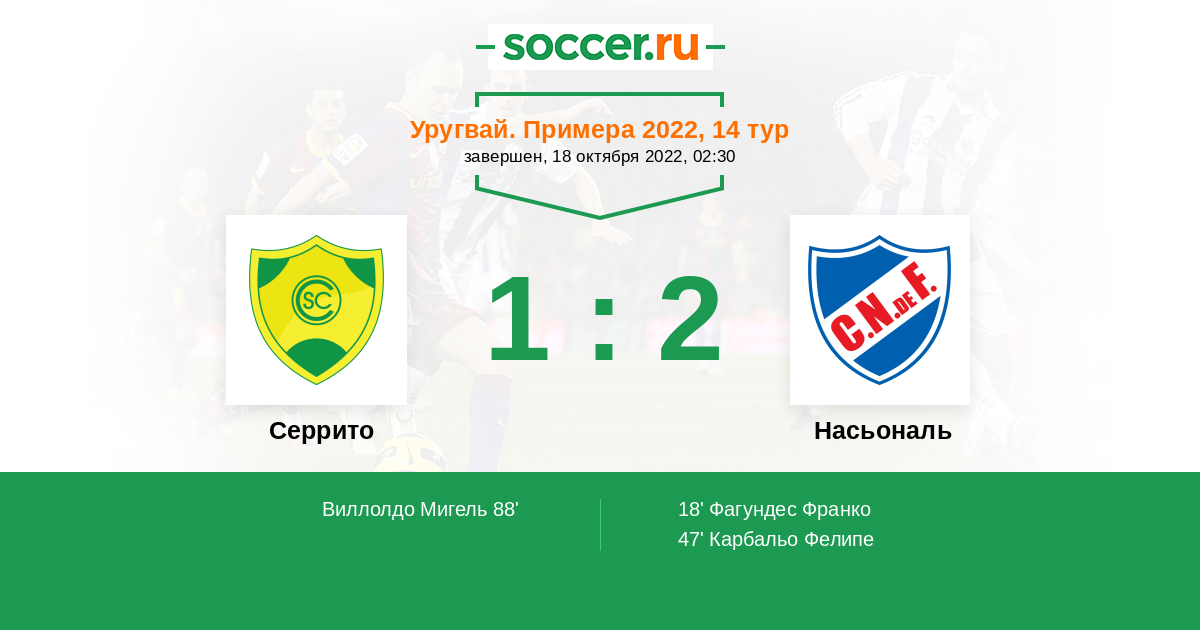 Протокол матча Серрито против Насьональ