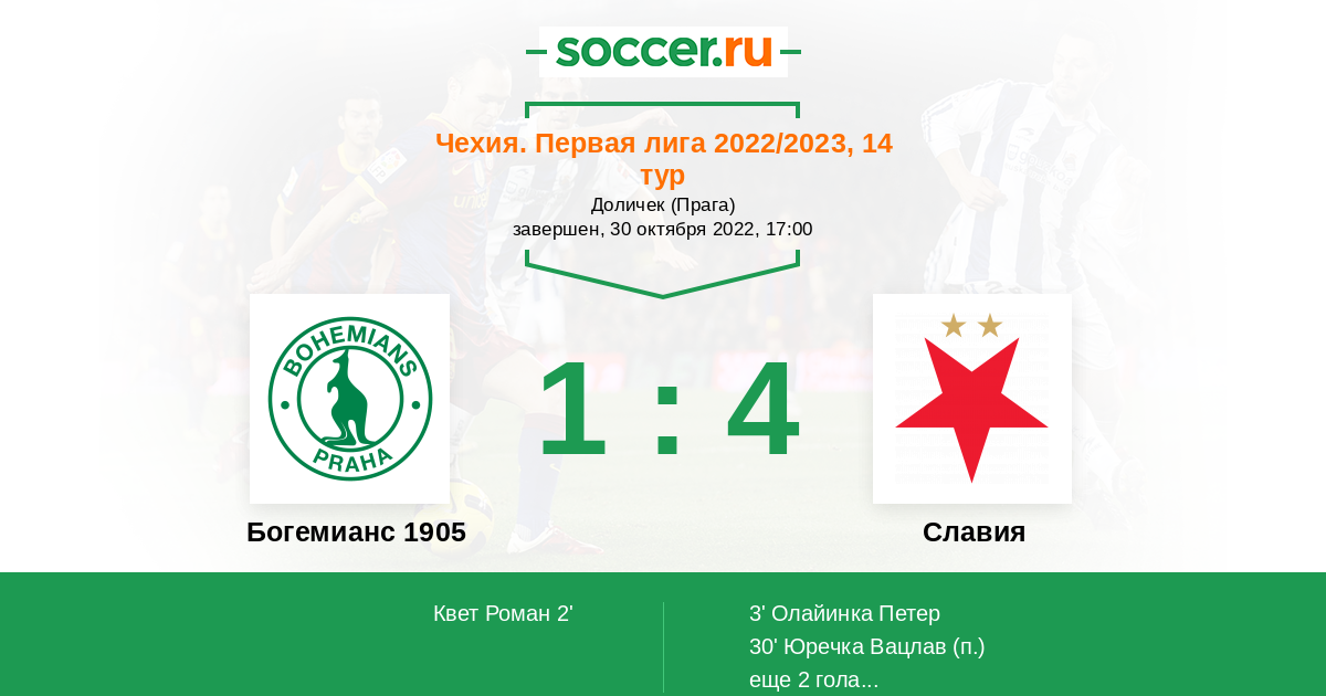 Протокол матча Богемианс 1905 против Славия
