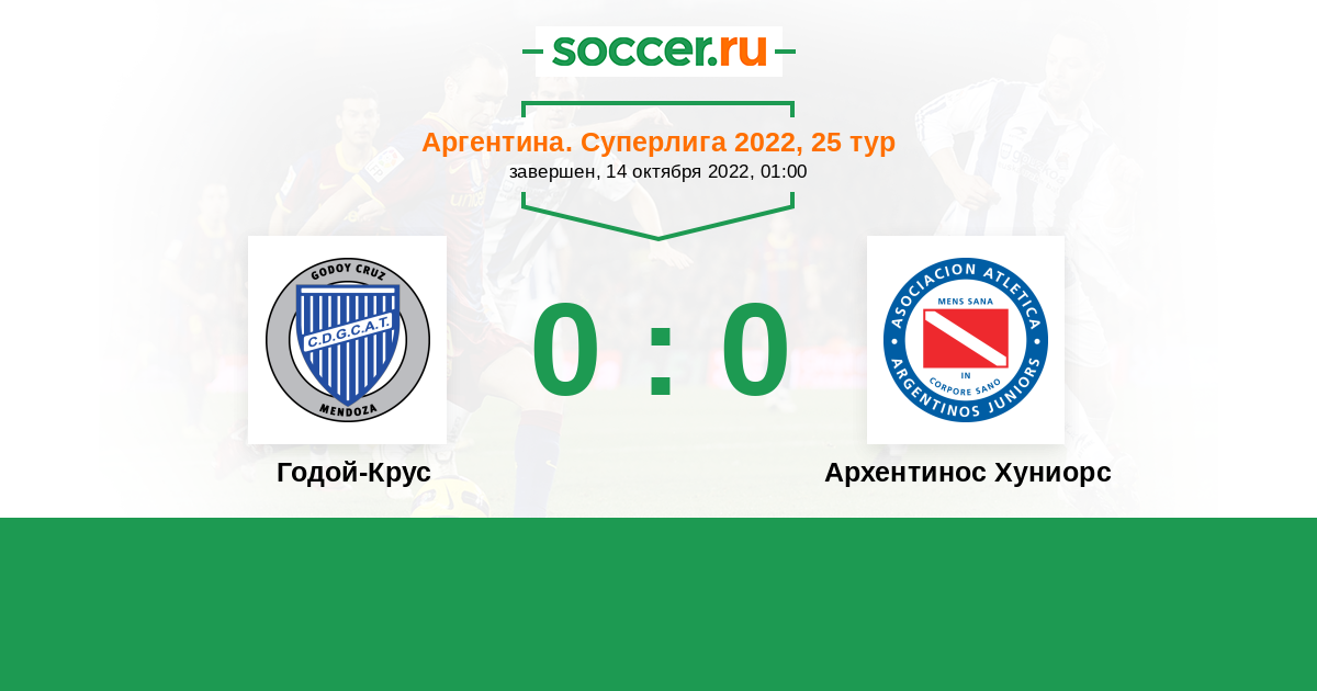 Протокол матча Годой-Крус против Архентинос Хуниорс