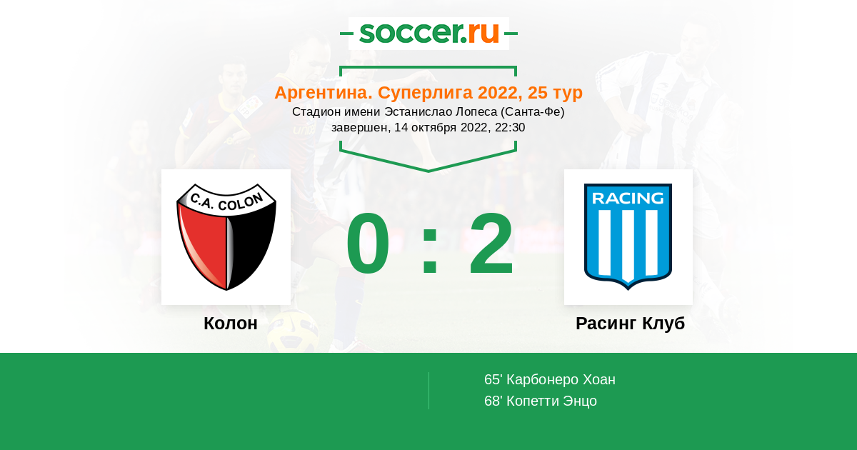 Протокол матча Колон против Расинг Клуб