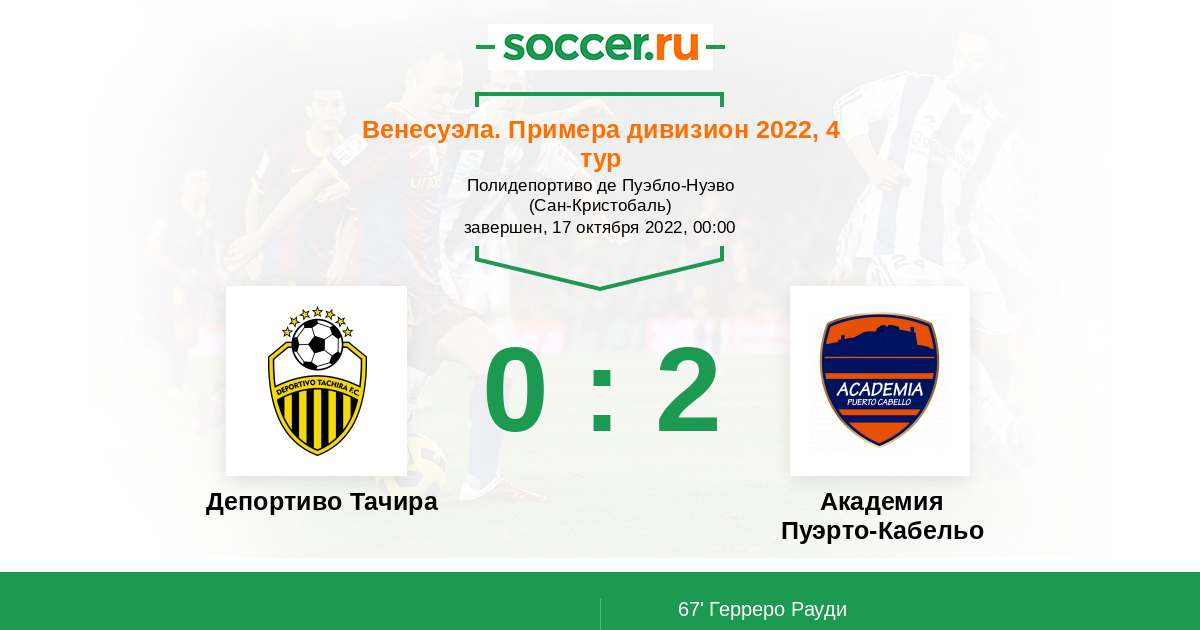 Протокол матча Депортиво Тачира против Пуэрто-Кабельо