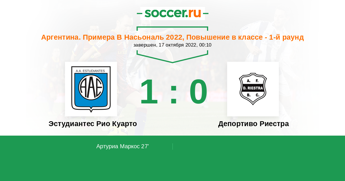 Протокол матча Эстудиантес Рио Куарто против Депортиво Риестра