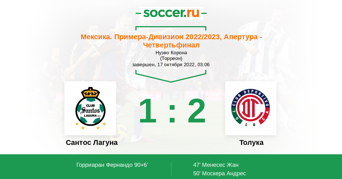 Протокол матча Сантос Лагуна против Толука