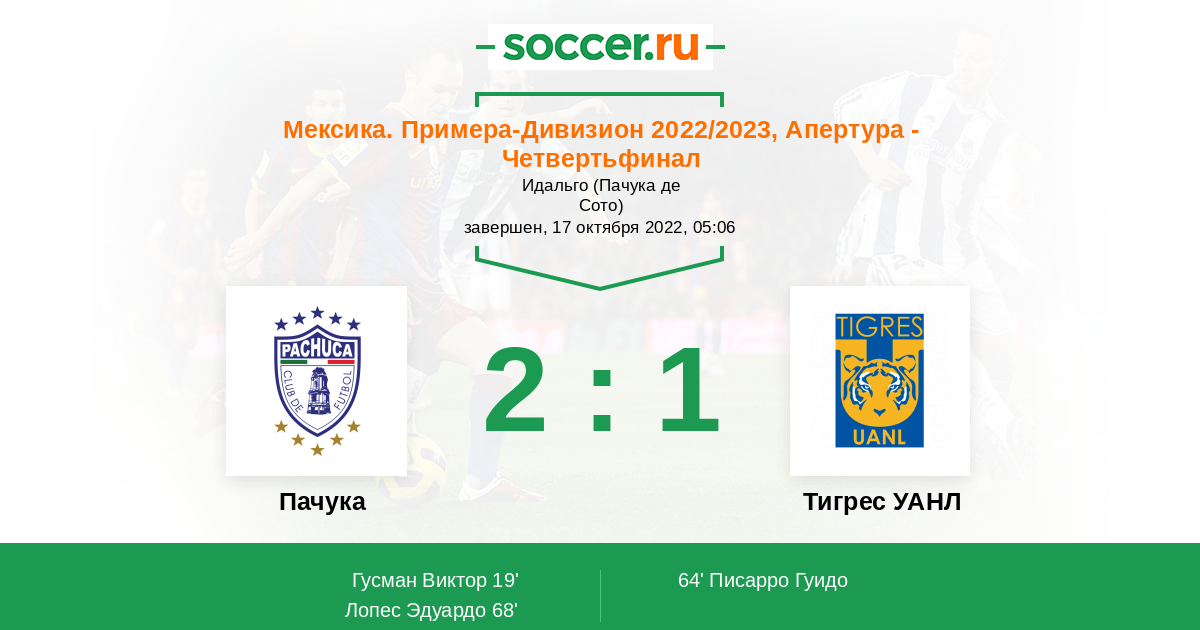 Протокол матча Пачука против Тигрес УАНЛ