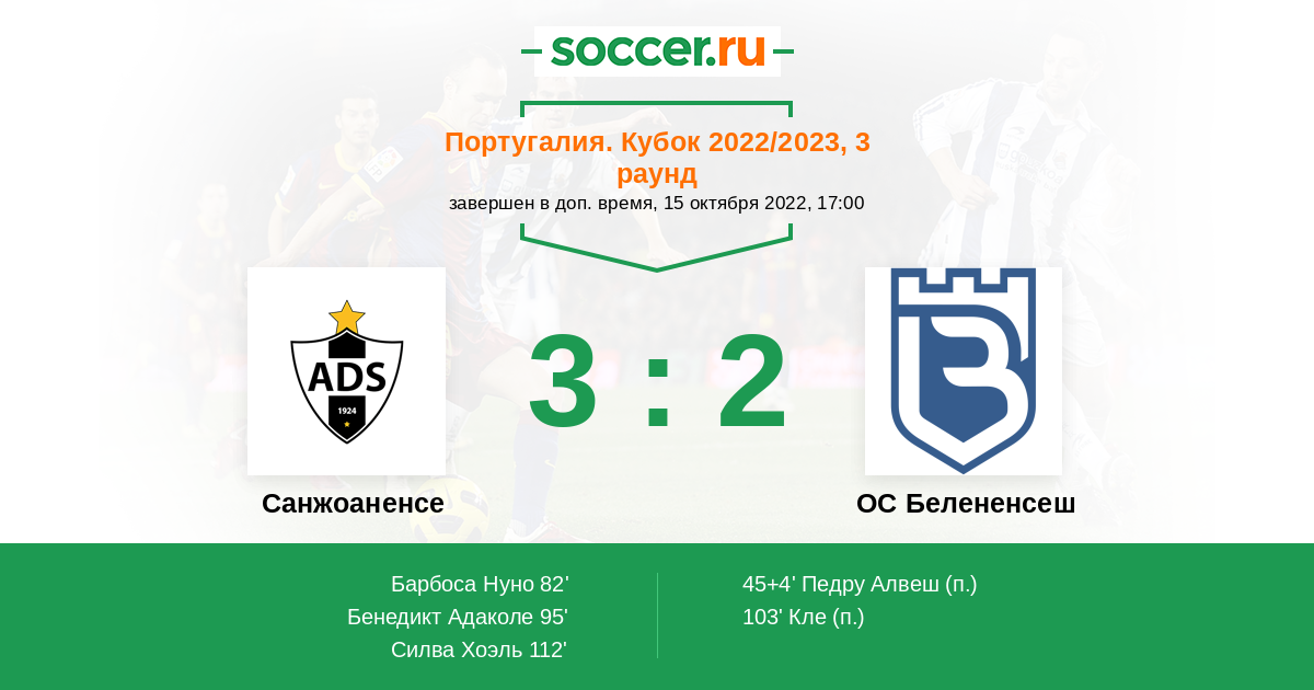 Протокол матча Санжоаненсе против ОС Белененсеш
