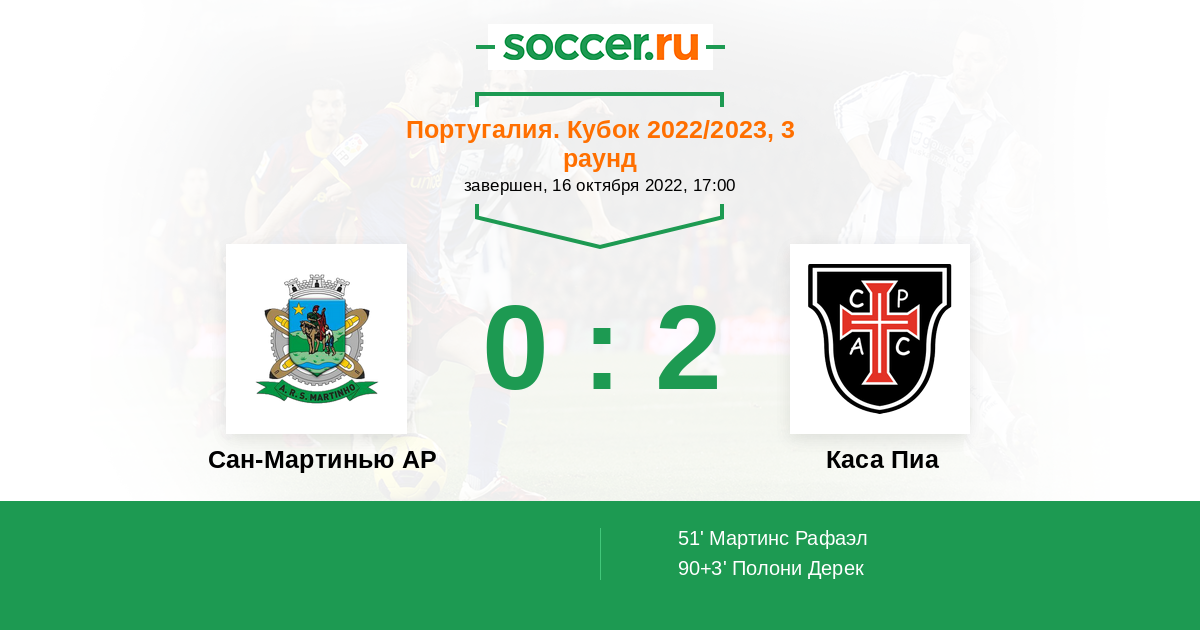 Протокол матча Сан-Мартинью АР против Каса Пиа