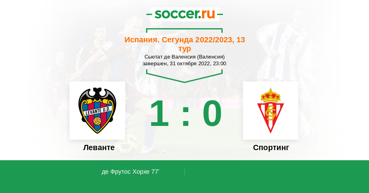 Протокол матча Леванте против Спортинг