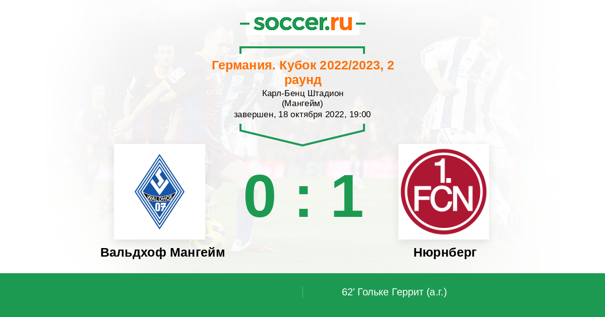 Протокол матча Вальдхоф Мангейм против Нюрнберг