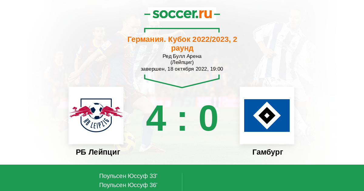 Протокол матча РБ Лейпциг против Гамбург