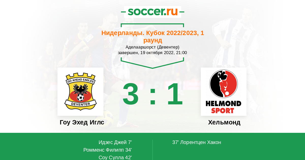 Протокол матча Гоу Эхед Иглс против Хельмонд