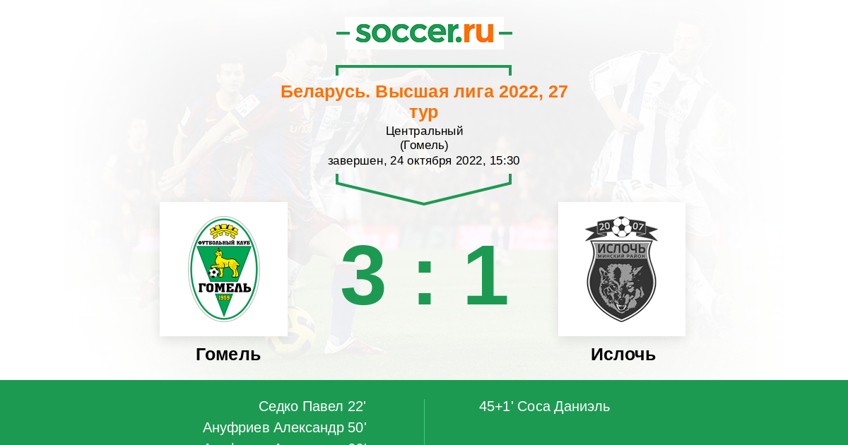 Протокол матча Гомель против Ислочь