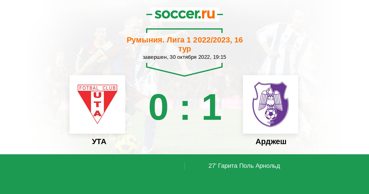 Протокол матча УТА против Арджеш