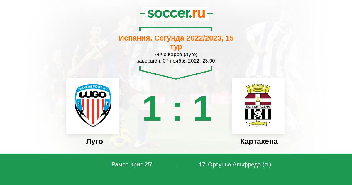 25' (1:1) Рамос Крис (16) (Куэльяр Хауме (29))