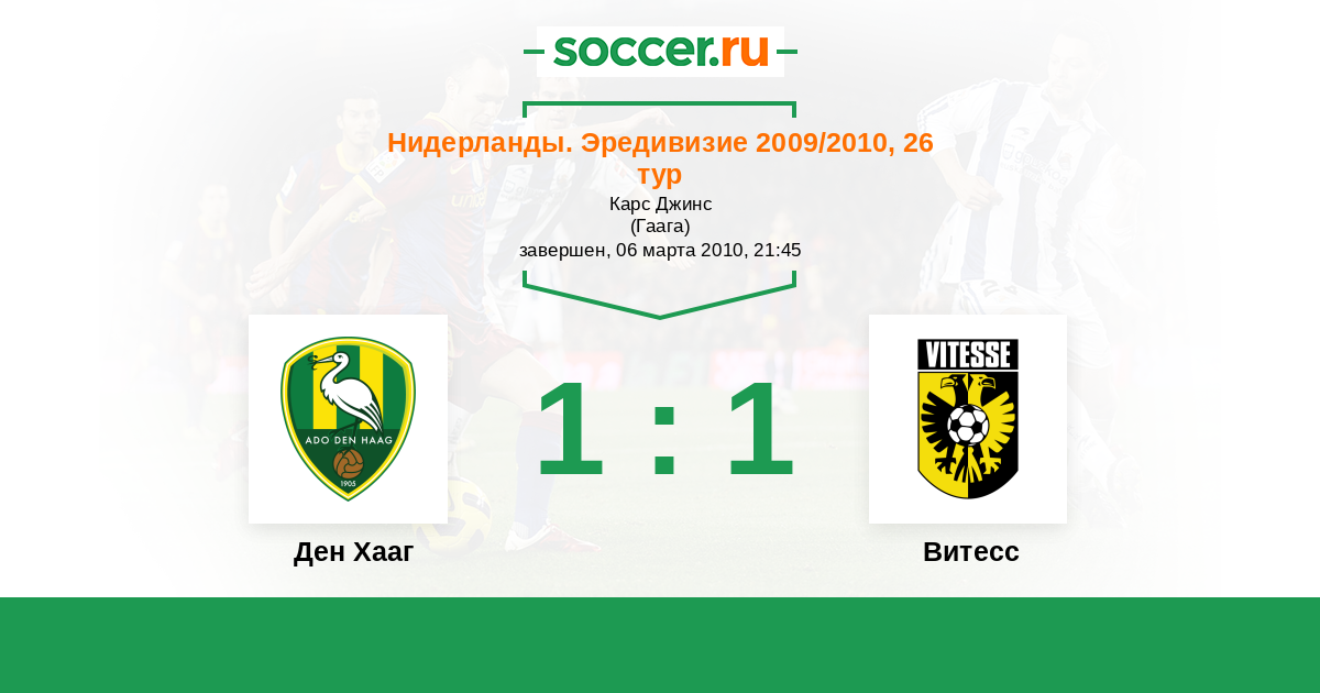 Нидерланды. Эредивизи 09.04.2011 Ден Хааг Логотип футбольный клуб Ден Хааг (Гаага) 1:0 Логотип футбольный клуб Витесс (Арнем) Витесс