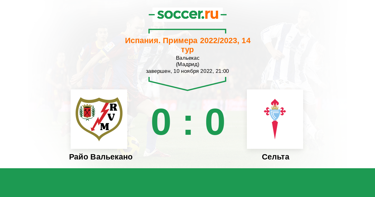 Протокол матча Райо Вальекано против Сельта
