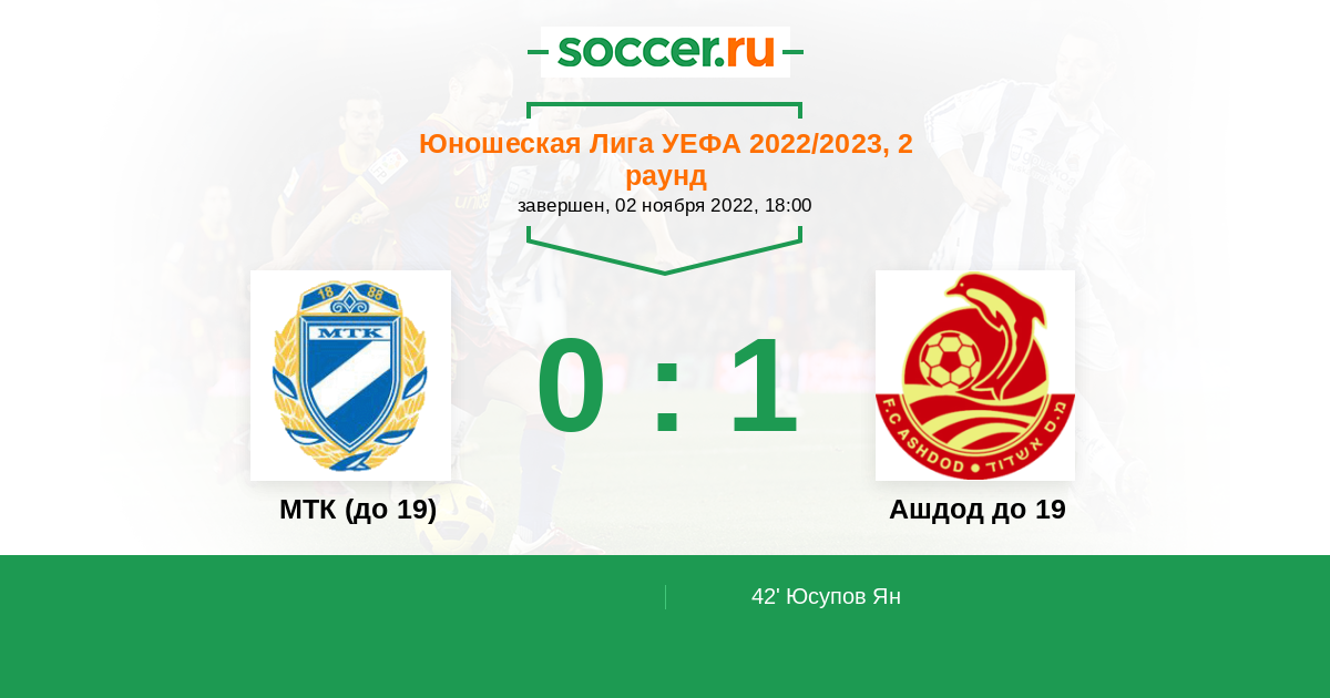 Протокол матча МТК (до 19) против Ашдод до 19