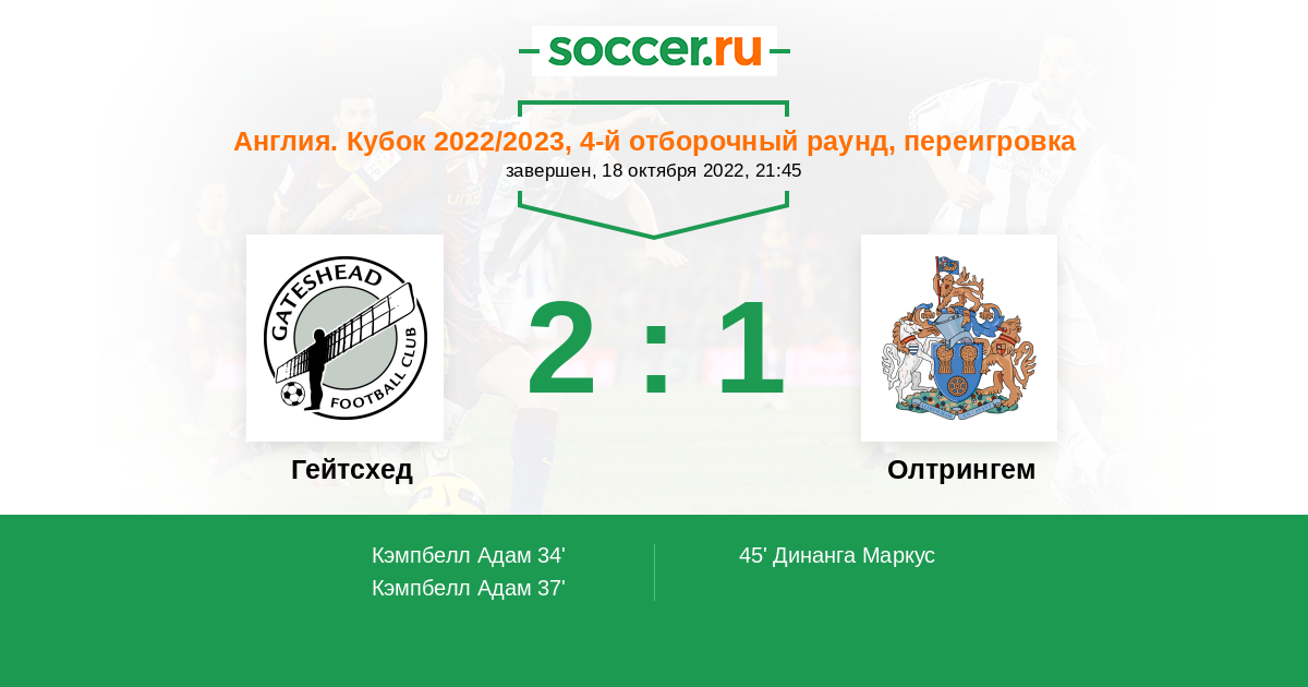 Протокол матча Гейтсхед против Олтрингем