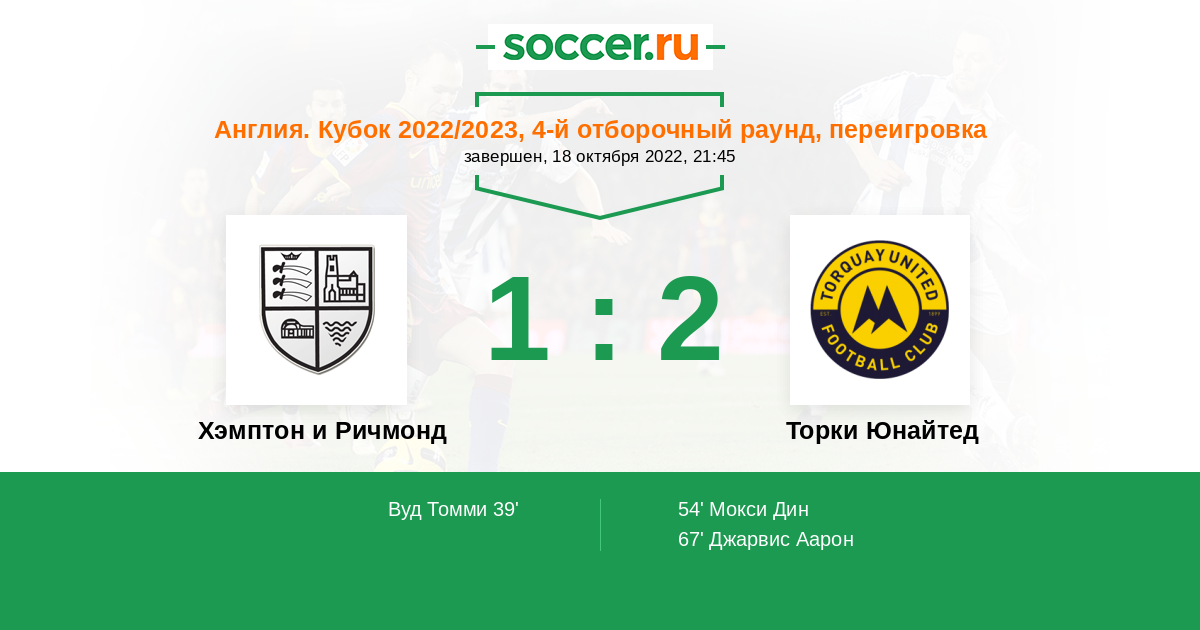 Протокол матча Хэмптон и Ричмонд против Торки Юнайтед
