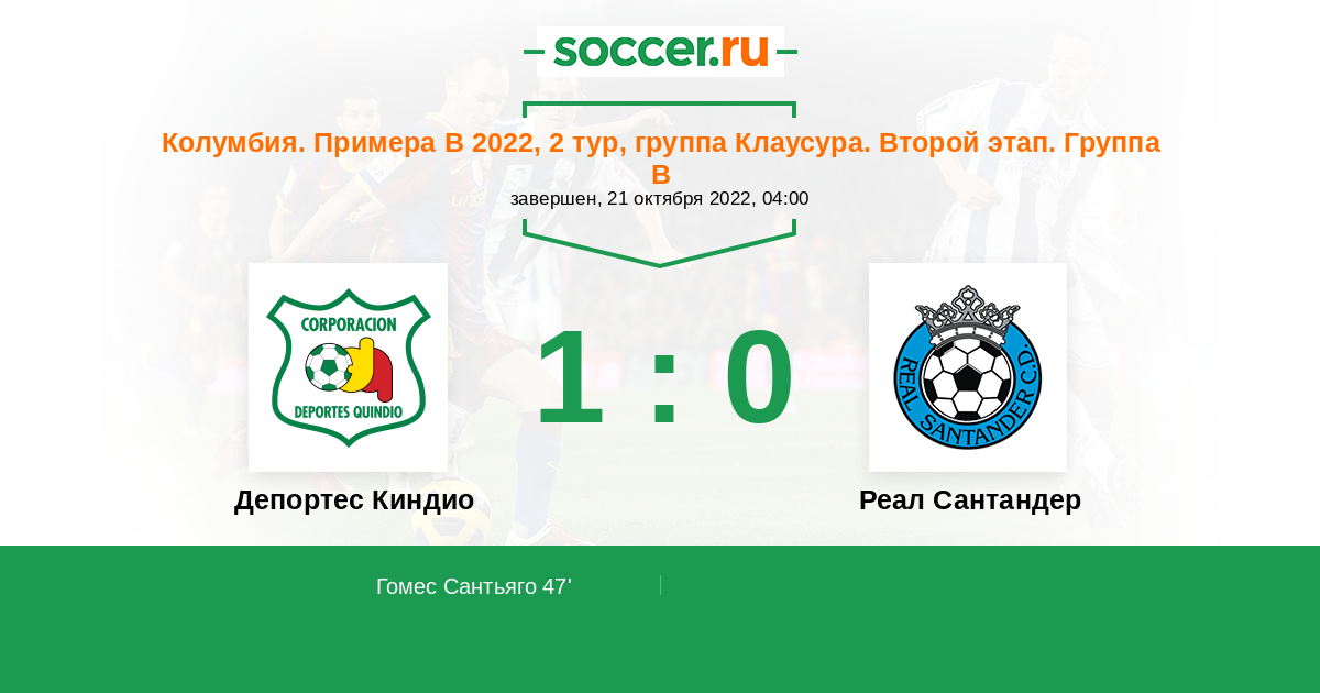 Протокол матча Депортес Киндио против Реал Сантандер