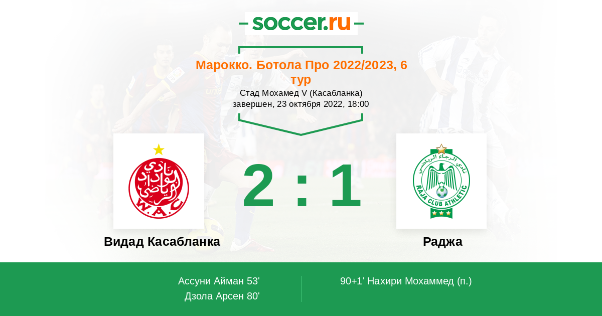 Протокол матча Видад Касабланка против Раджа