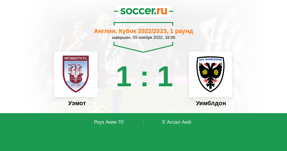 Протокол матча Уэмот против Уимблдон