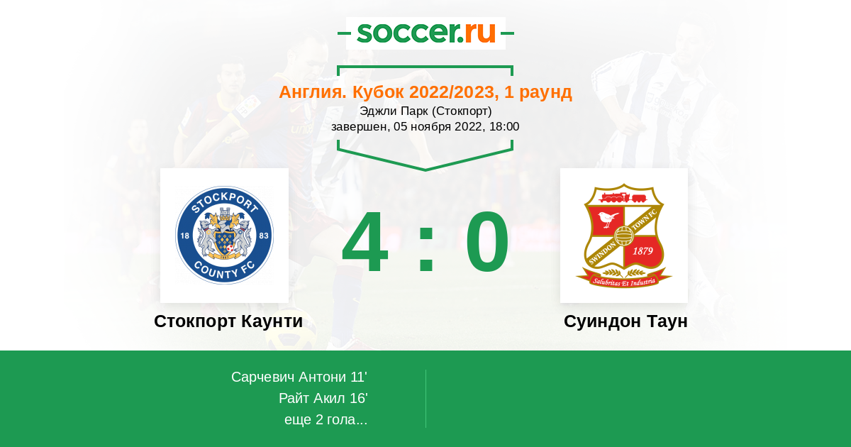Протокол матча Стокпорт Каунти против Суиндон Таун