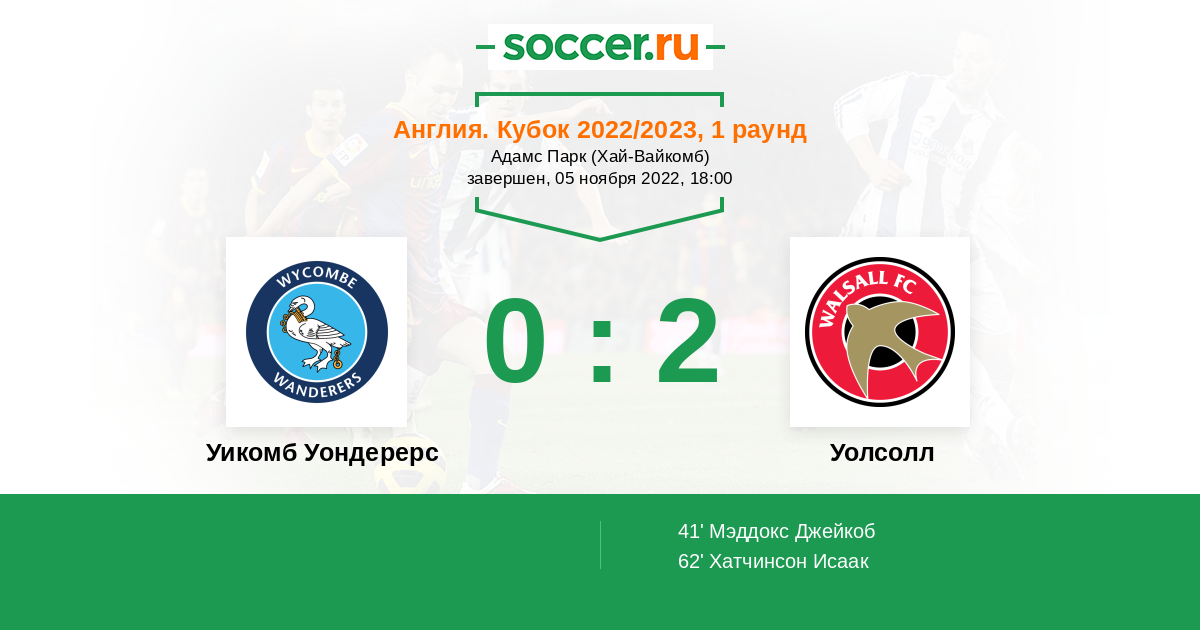 Протокол матча Уикомб Уондерерс против Уолсолл