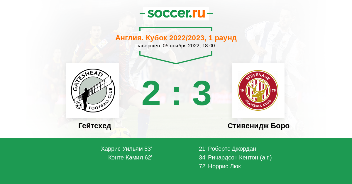 Протокол матча Гейтсхед против Стивенидж Боро
